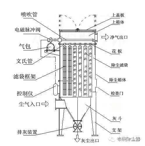 布(bù)袋除塵(chén)器工作原理結構圖及使用注意事項