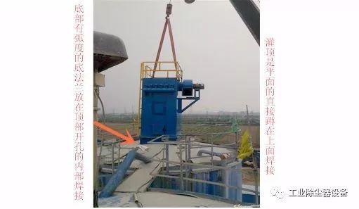 3、焊接好(hǎo)底法蘭,準備好(hǎo)石棉繩(shéng)或(huò)玻璃膠來密封法蘭對接處,開始吊裝除塵器上箱體,對好法蘭孔,穿螺絲加石(shí)棉繩或玻璃(lí)膠,上緊螺(luó)絲就OK了。