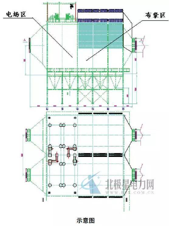 4.3.1 改造後電袋複合式除塵器結構(如示意圖)。