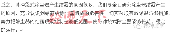 脈衝布袋除塵器結露現象原因分析及解決(jué)辦法(fǎ)