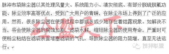 脈衝布袋除塵器結露現象原因分析及解決辦法