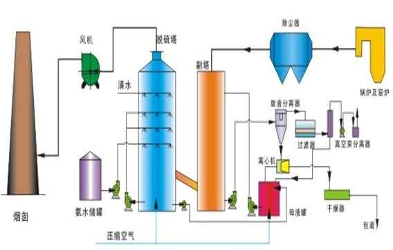 氨是一種良好的堿性(xìng)吸收劑。利用氨的這一特性,以水溶液中的NH3和SO2反應為基礎用氨水將廢(fèi)氣中的SO2脫除,生成亞硫(liú)酸氫銨和亞硫酸銨溶液,經氧化後得(dé)到硫(liú)酸銨溶液,進而幹燥得到硫胺產品。